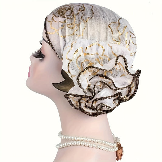 4pcs Elegant Floral Lace Headband Caps Turban women