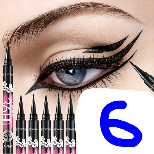 36 hours Long-Lasting Eye Makeup 6pcs Black Liquid Eyeliner Pens Smudge-Proof and Waterproof